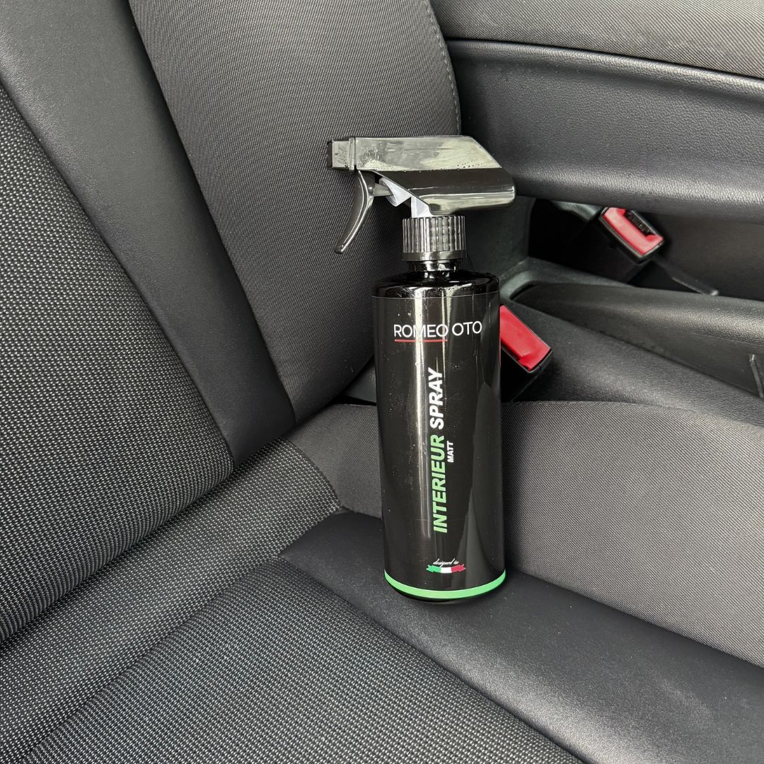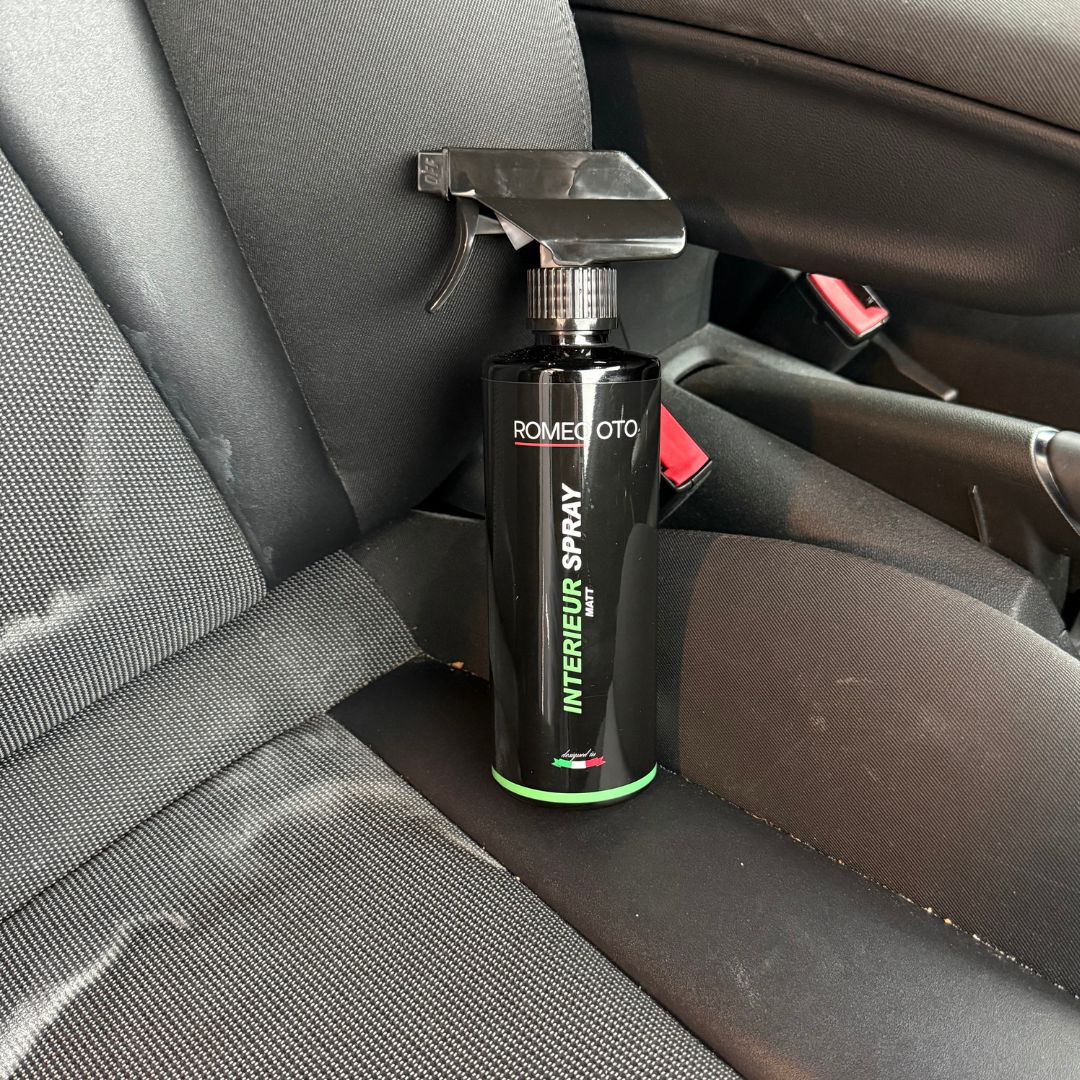 Spray de ROMEO OTO INTERIEURREINIGER Matt gelijkmatig op het oppervlak dat je wilt reinigen.